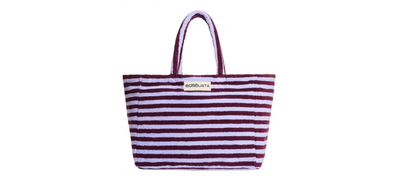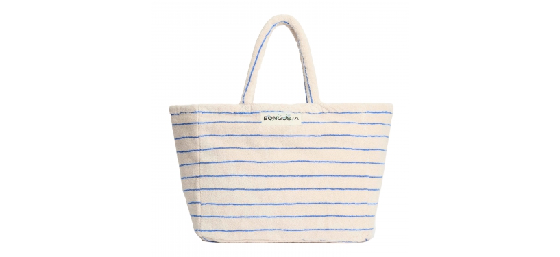En anderledes taske i frotté, i fine farver og en blød og absorberende kvalitet. Tasken har et broderet Bongusta label øverst.