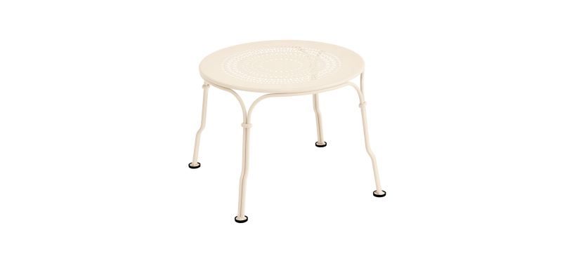 Det smukke havebord er udsmykket med ringe, der er håndlavede i Frankrig. Bordpladen er også dekoreret med et flot perforeret mønster. Fermob Low Table er blevet behandlet, så det er godt beskyttet mod regnvejr og meget holdbar.