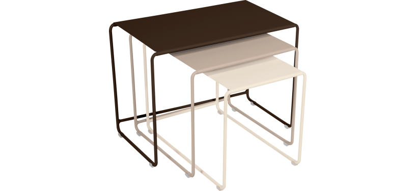 Fermob Oulala består af tre små sideborde, der også fungerer som indskudsborde og dermed skubbes ind under hinanden.